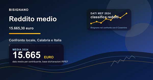Il riferimento nazionale, come riportato anche nella classifica diffusa da RaiNews sulla lista MEF dei comuni più ricchi d’Italia, mostra bene quanto il divario tra i centri più forti e quelli del Mezzogiorno resti ampio. Bisignano si inserisce in questa distanza, con un reddito medio che va letto dentro il contesto del Cosentino e non isolatamente.