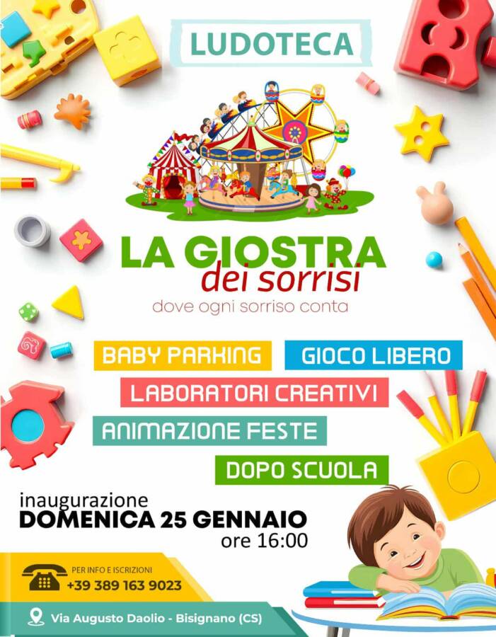 La giostra dei sorrisi è la nuova ludoteca che sarà inaugurata domenica a Bisignano, in via Augusto Daolio.
