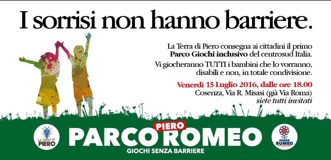 Con il ricavato di Conzativicci e Foraffascinu, e grazie alla generosità di migliaia di spettatori provenienti dalla città e da tutto il territorio cosentino, diventa realtà il parco Piero Romeo di via Misasi a Cosenza.