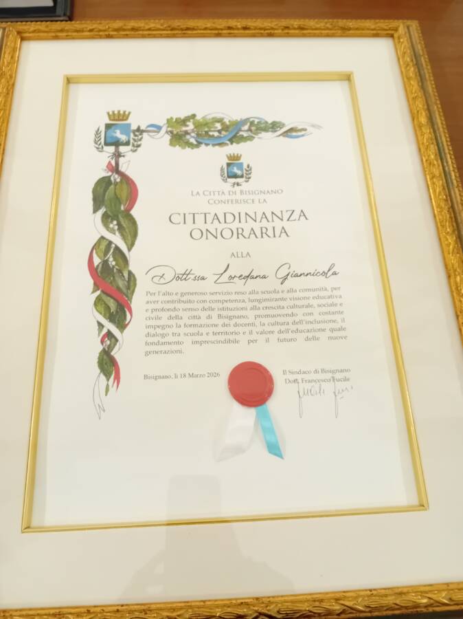 Loredana Giannicola è la nuova cittadina onoraria di Bisignano. Per anni è stata direttrice scolastica del plesso di Collina Castello, e ora ricopre il ruolo di dirigente dell’Ufficio scolastico regionale della Calabria, dopo esser stata alla guida dell’ambito territoriale di Cosenza. Il riconoscimento è iniziato dal momento in cui l’associazione dei maestri cattolici ha proposto questa onorificenza, che è stata recepita dall’amministrazione comunale con favore.