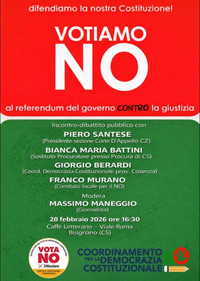 Referendum sulla giustizia, nuovo incontro a Bisignano per discutere le regioni del No.