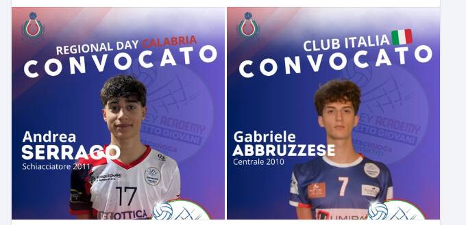Da Crotone è maturata una buona esperienza nel regional day riservato ai pallavolisti del 2011 per Andrea Serrago, un’esperienza formativa importante che sicuramente darà stimoli positivi per il futuro. Domani, invece, sarà atteso dalla convocazione nel club Italia il classe 2010 Gabriel Abbruzzese, che sarà allenato da Vincenzo Fanizza e si metterà in evidenza in un contesto davvero formativo.
